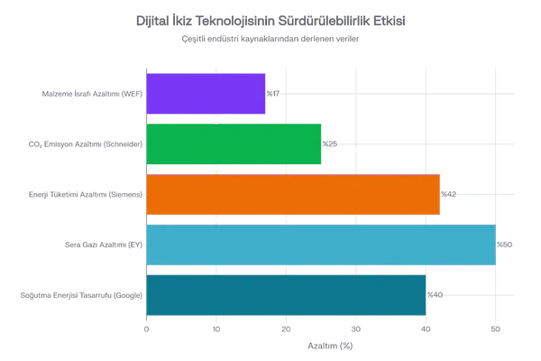 - Schneider Electric (LeVaudreuil): Dijital ikiz ile enerji yönetiminde %25 iyileştirme, malzeme israfında %17 azalma, CO₂ emisyonlarında %25 düşüş